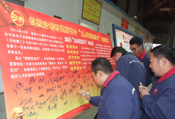 12月4日下午,机械公司党支部在铆焊工段厂房内开展“12.4宪法日”主题教育,全体职工参加学习。