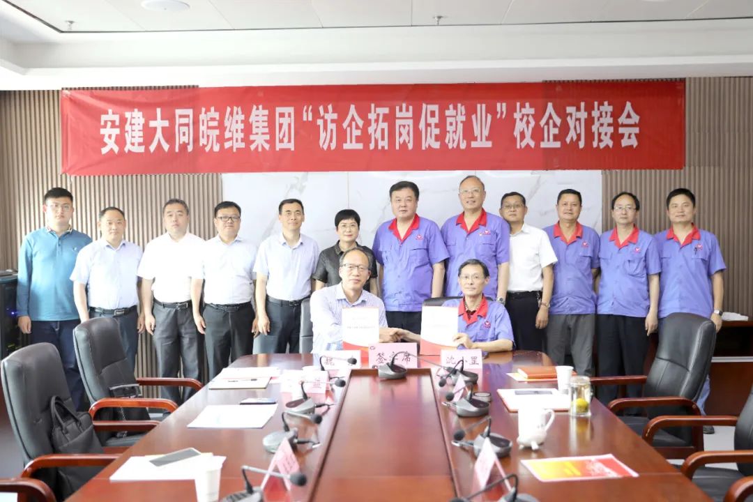 6月14日下午,集团公司与安徽建筑大学举行“访企拓岗促就业”校企对接会。安徽建筑大学党委常委、纪委书记,省监委监察专员王玉兰,集团公司党委书记、董事长吴福胜及双方相关负责人参加。