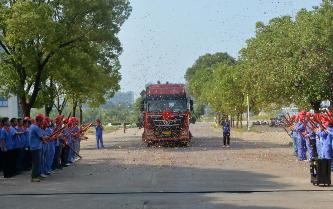 在掌声和礼炮声中,吴福胜宣布VAE乳液项目关键核心设备正式入厂。