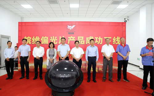 在所有来宾的共同见证下,吴福胜宣布偏光片产品成功下线。巢湖市委书记张红军、巢湖市委副书记、市长汪功胜,省国资委规划处处长马润华,合肥市商务局副局长崔霞,公司领导吴福胜、周农杰共同按下启动球。