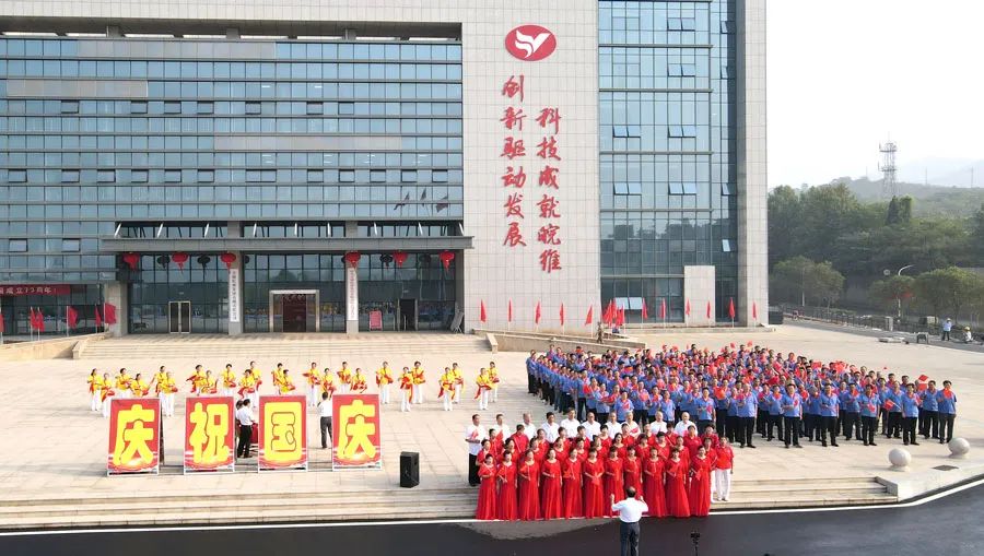 “我爱你中国,我爱你春天蓬勃的秧苗,我爱你秋日金黄的硕果……”研发大楼前红旗招展,横幅飘飘。朝阳初升,退休老同志自发组成的腰鼓队、歌唱队穿着节日的盛装,早早在大楼前敲响喜庆的锣鼓,在锣鼓声中跳起了欢快的舞蹈。