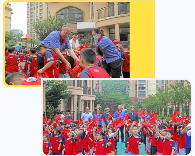 育人为本,德育为先。现场举行了爱国主义教育,邵明文讲解有关国旗的相关知识,教育小朋友们爱护国旗、珍惜国旗,要为祖国争光!