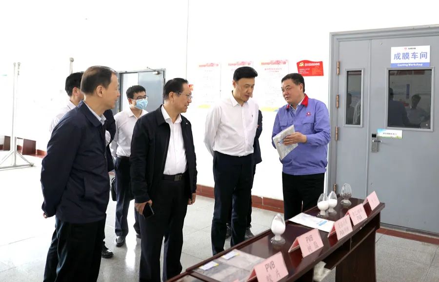 签约仪式前,省港航集团党委书记、董事长丁庆领一行前往PVA膜分厂参观,详细了解公司五大产业链发展情况。