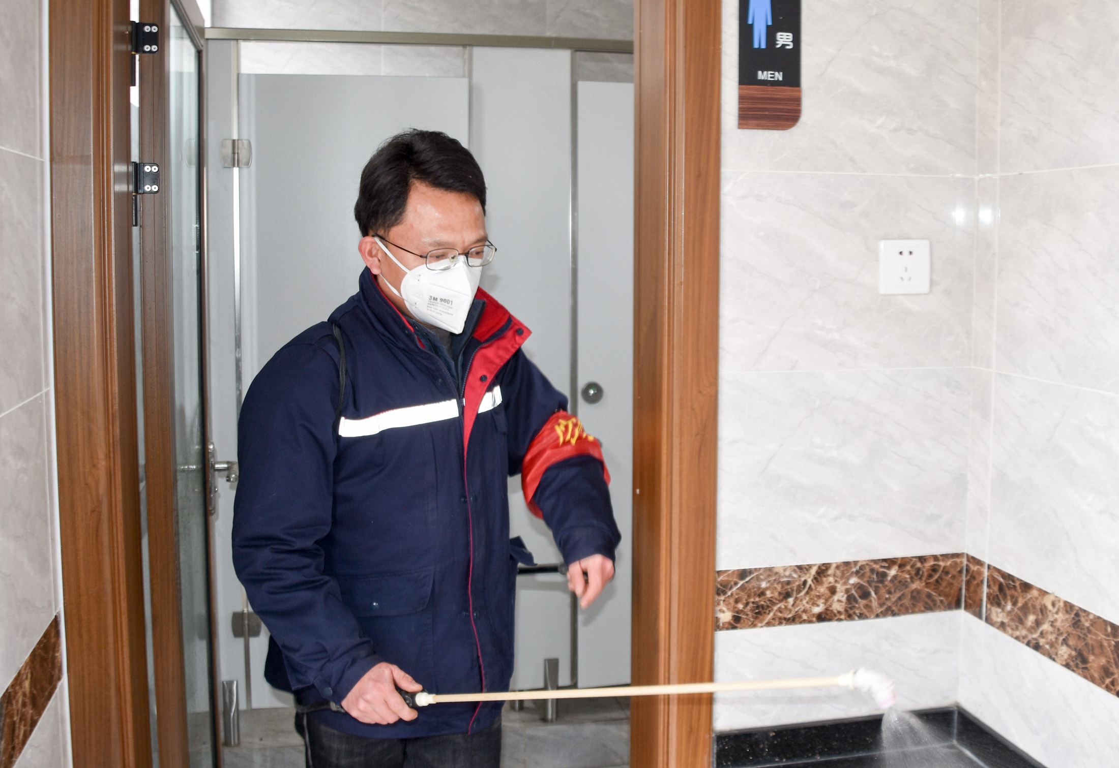 (王健在社区公园厕所消毒)